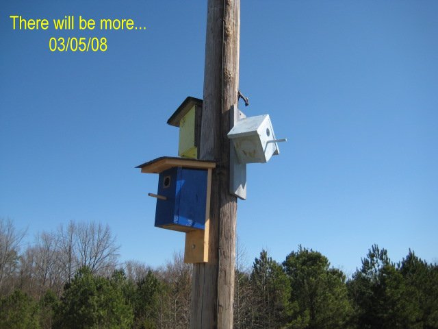 3 of her bird houses. The wind takes its toll. |