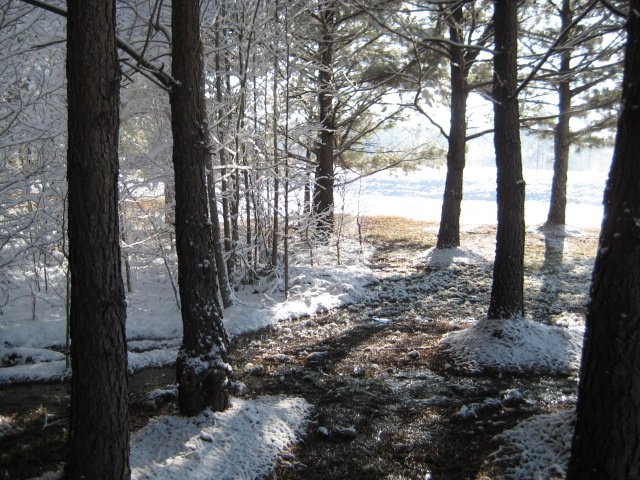 Dogwood Isle and the dam creek are on our left as we
