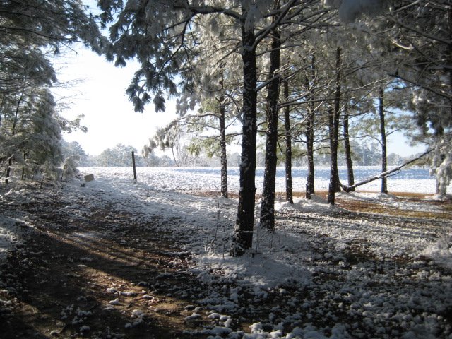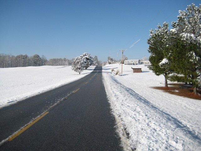 Out of the wood and looking up Barksdale Ferry Road. |